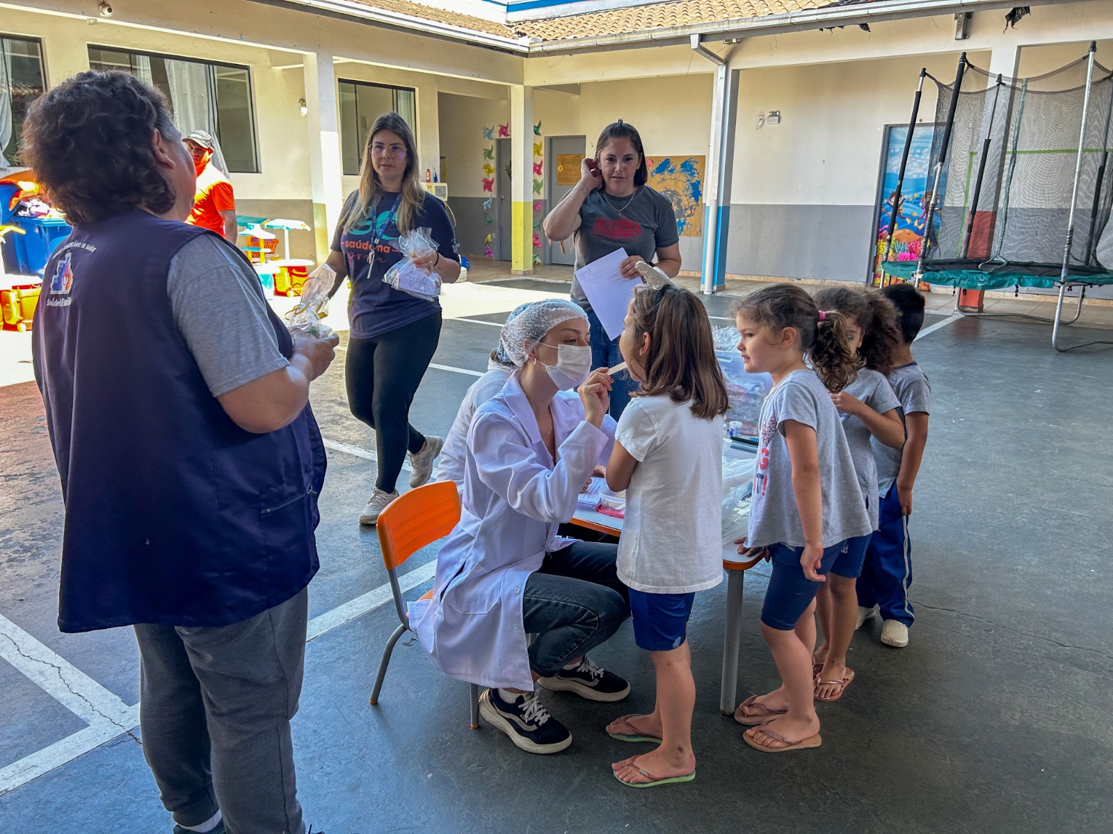 A ação foi realizada com aproximadamente 90 crianças das turmas dos maternais e jardins do período matutino. Na ocasião, profissionais da Saúde fizeram uma contação de história, sendo ensinado os movimentos corretos para a escovação. Por fim, foram entregues brindes para cada uma das crianças, feitos pela própria UBS.