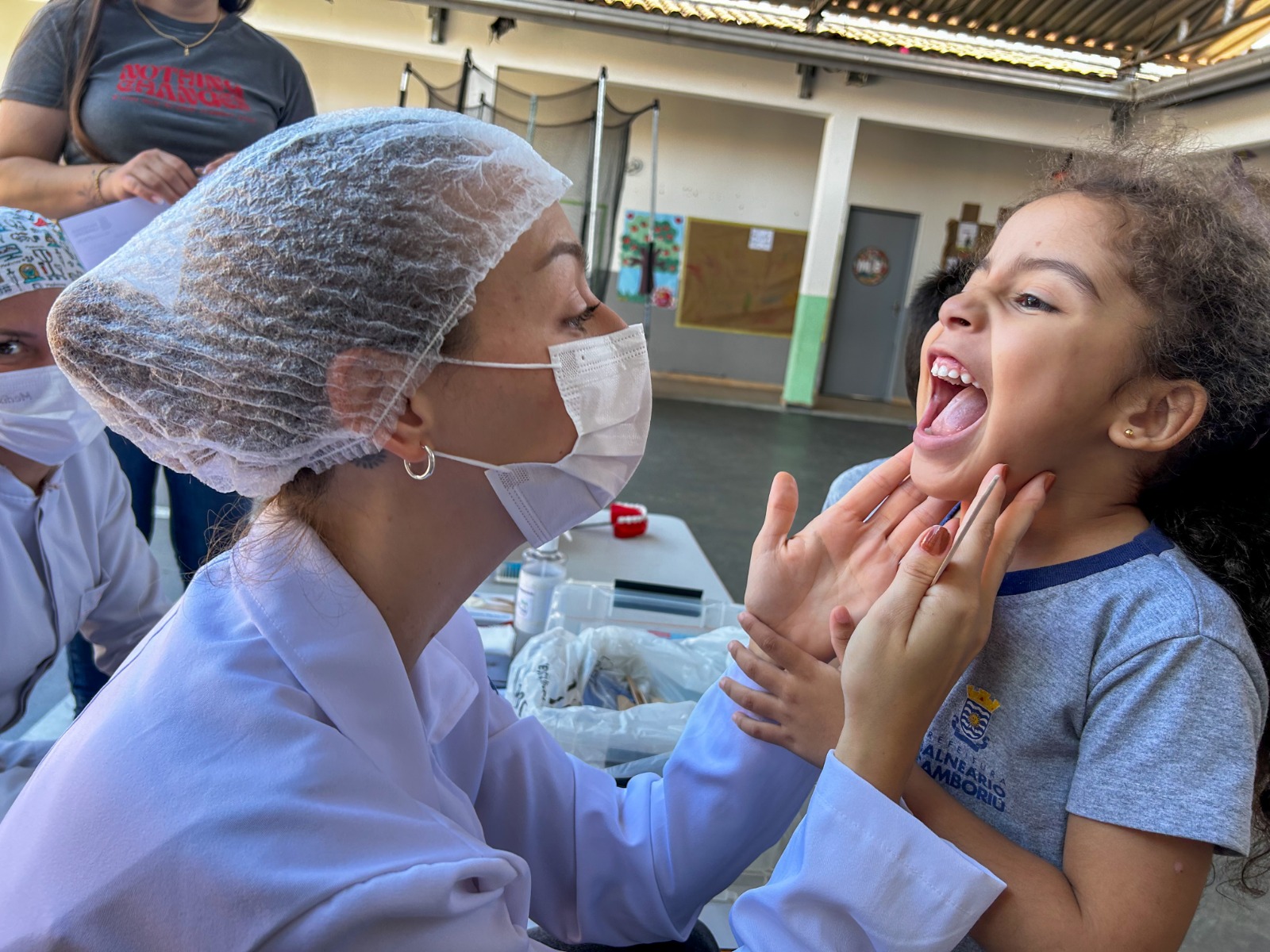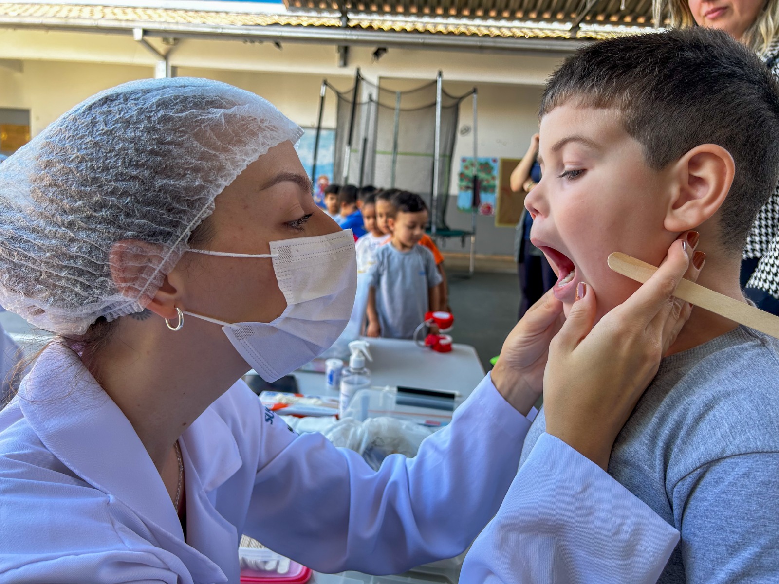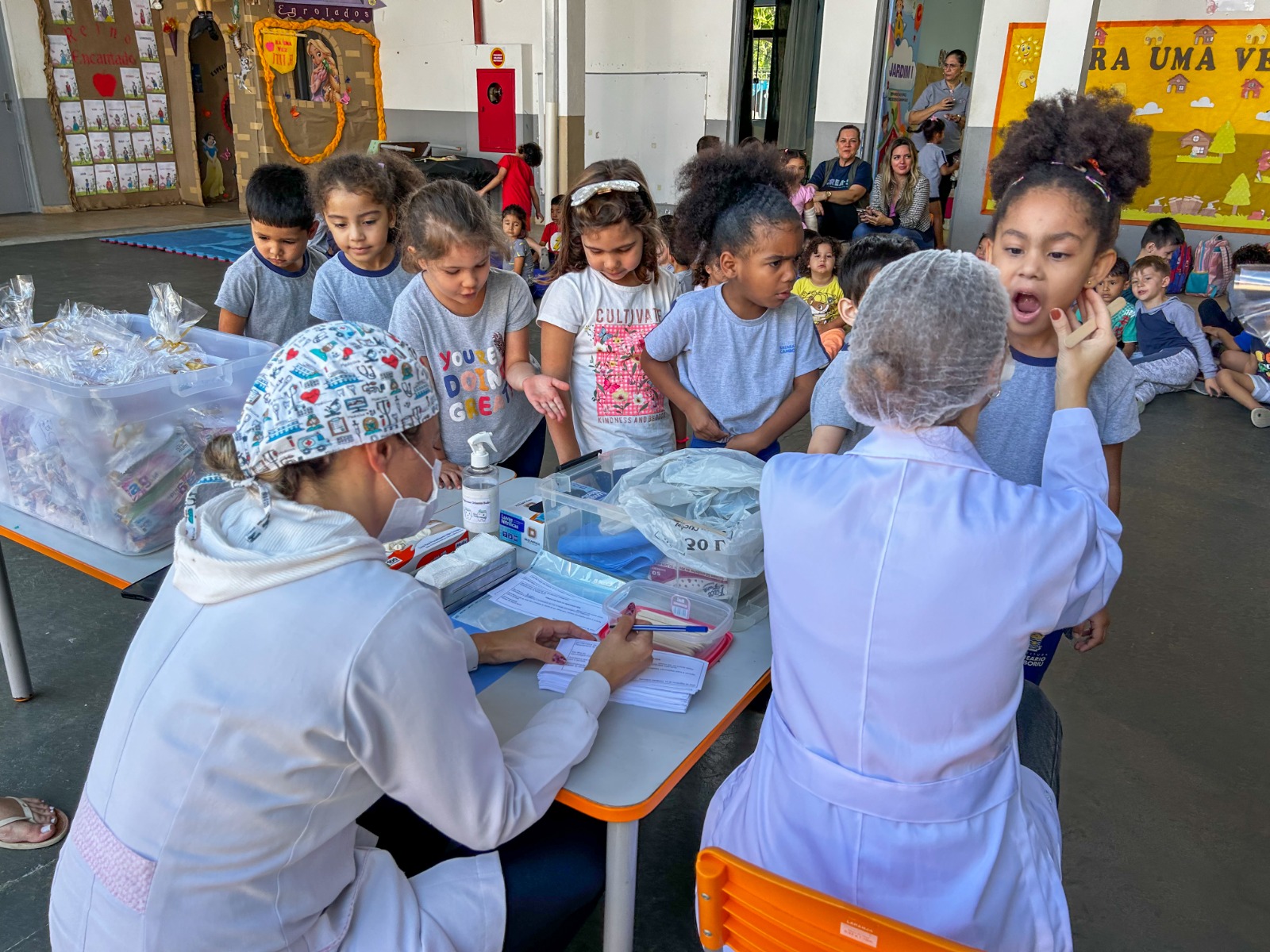 Os profissionais que atuam na Unidade Básica de Saúde (UBS) São Judas levaram uma ação especial para as crianças atendidas no Núcleo de Educação Infantil (NEI) Rio das Ostras. Na manhã desta quarta-feira (19), uma dentista da UBS abordou, de forma lúdica, a importância dos cuidados com a saúde bucal e avaliou os dentinhos dos pequenos. A iniciativa é desenvolvida por meio do Programa Saúde na Escola (PSE), política intersetorial dos Ministérios da Saúde e Educação.
