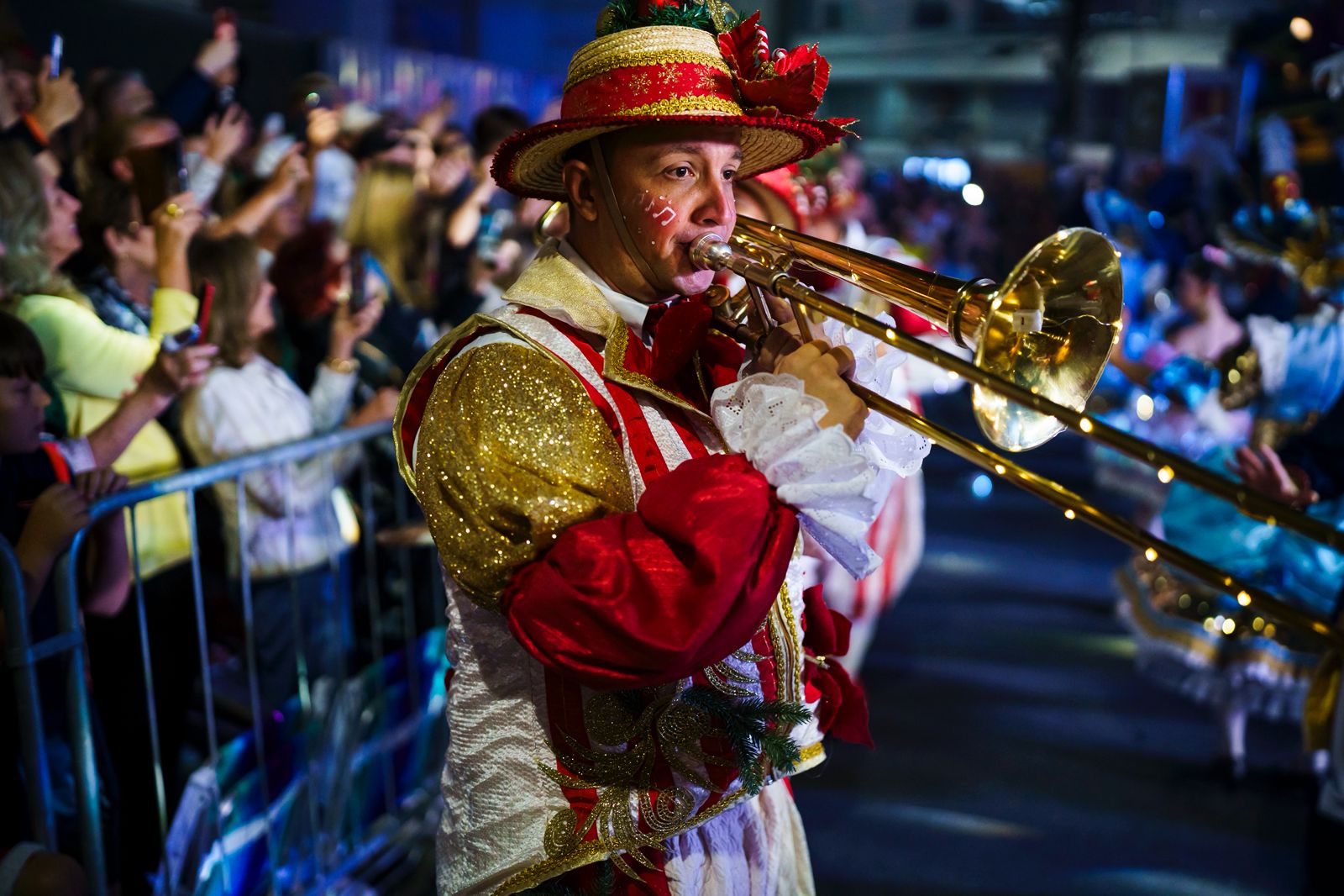 De Itajaí, o professor de música da Filarmônica, Cristofer Willian Skorie, 33 anos, atua na banda do desfile junto a outros quatro músicos também da Filarmônica.