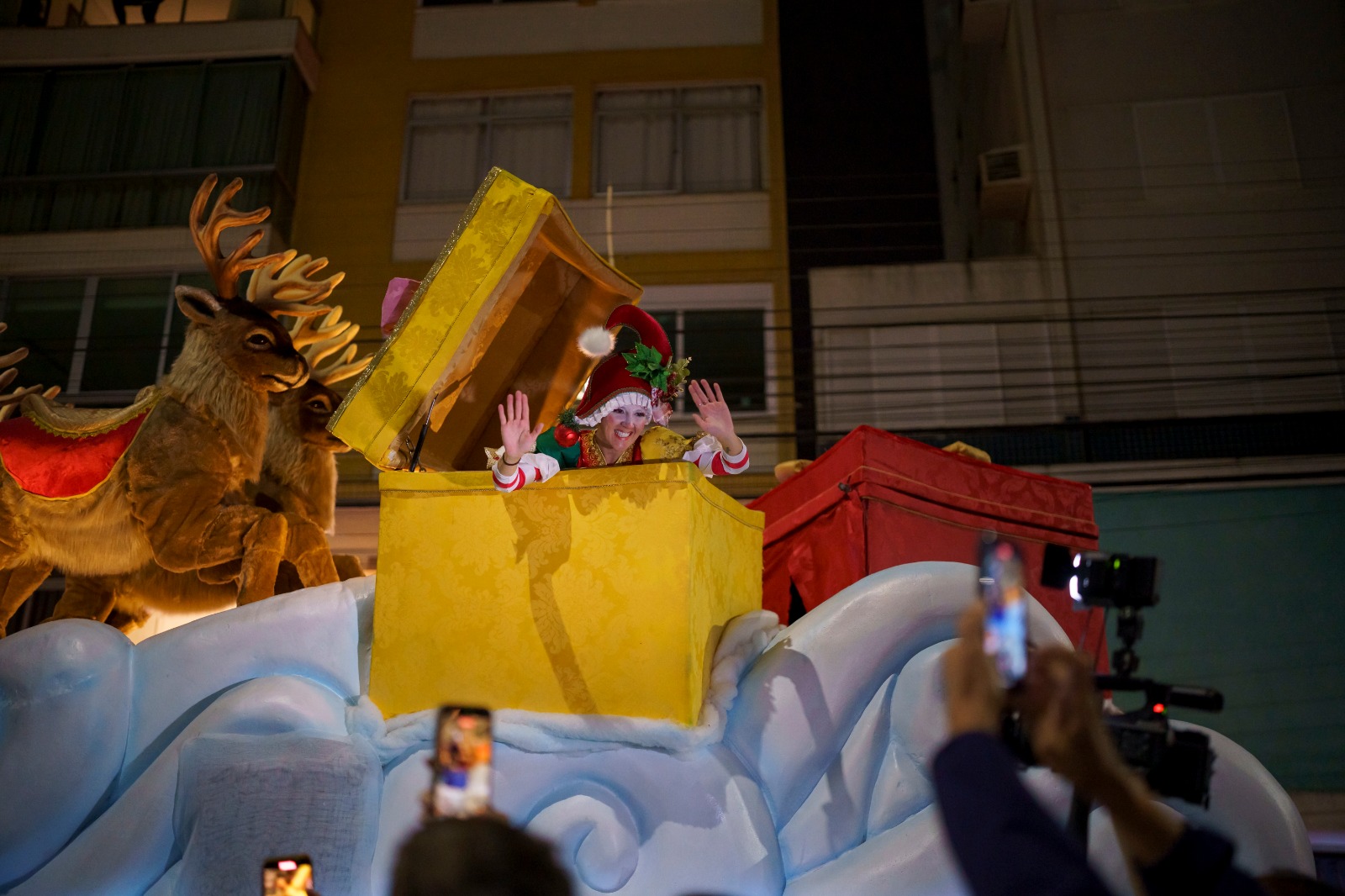 Mais um desfile “Minha Noite de Natal” foi promovido em Balneário Camboriú neste sábado (29), incluído na programação do Viva Natal BC 2025. Com início às 20h, os carros alegóricos e elenco de artistas encantaram o público presente ao longo da Avenida Atlântica.