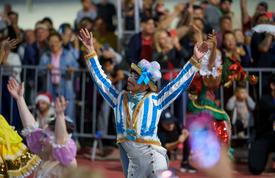 Morador de Balneário Camboriú, Gabriel Antônio Fiametti integra o elenco de bailarinos presentes no grande desfile de Natal. O artista é quem faz a própria maquiagem, e comenta como foi o processo para aprender a reproduzi-la.