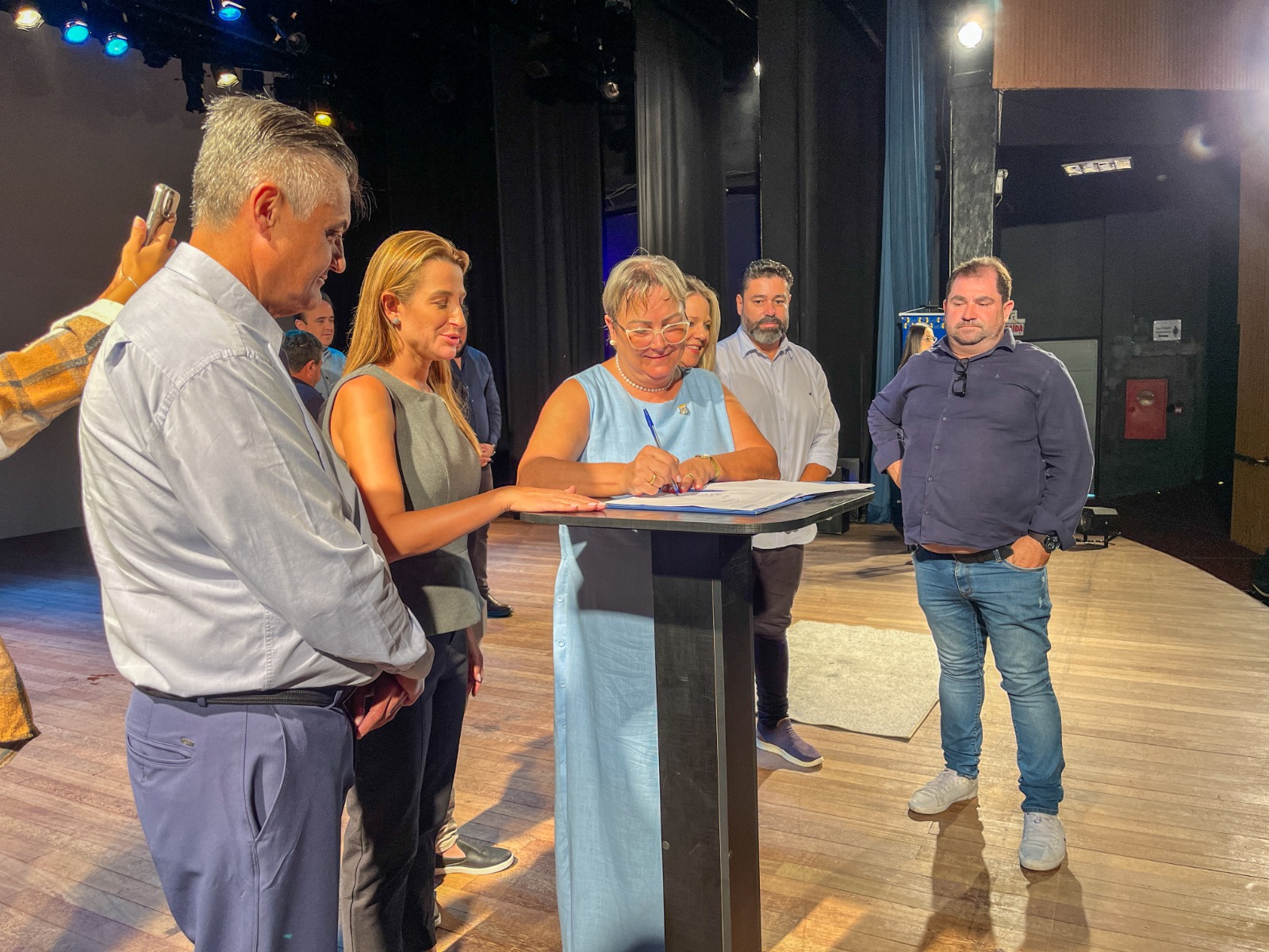Em seguida, a prefeita assinou o documento que autoriza o investimento na renovação dos instrumentos das bandas e fanfarras escolares do município. Ao todo, são 537 itens adquiridos, em um investimento de R$ 416.048,70.