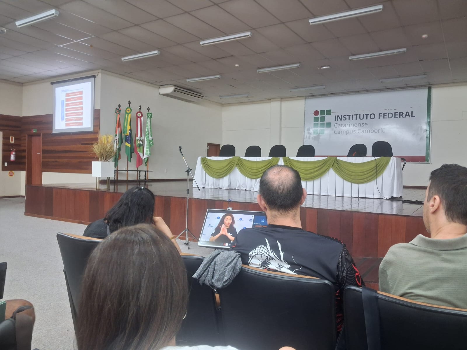 Profissionais surdos da rede pública municipal de ensino de Balneário Camboriú puderam contar com a acessibilidade comunicacional integral na Língua Brasileira de Sinais (Libras) durante o curso de formação continuada A Escola Integral em Tempo Integral: desafios e potencialidades — realizado na quinta-feira (12), no Instituto Federal Catarinense, em Camboriú. O recurso integra o programa BC +Acessível.