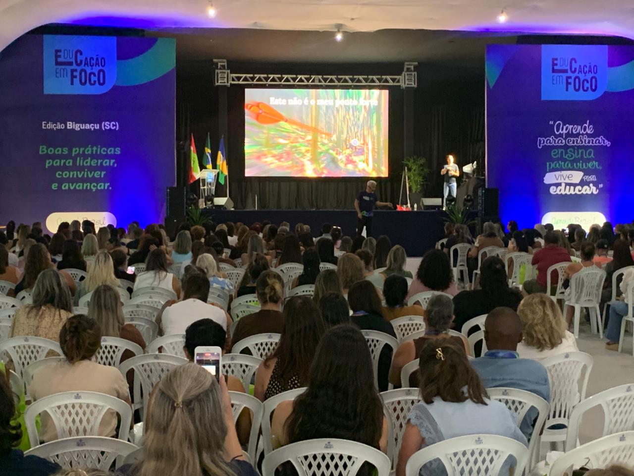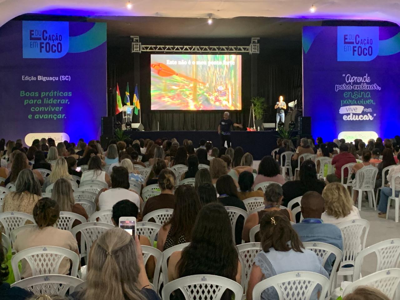 Servidores da Secretaria de Educação de Balneário Camboriú participaram nesta quarta-feira (18) do evento “Educação em Foco - Boas práticas para liderar, conviver e avançar”, promovido pelo sistema de ensino Aprende Brasil Educação, na cidade de Biguaçu (SC). Os 50 técnicos pedagógicos da Seduc e gestores de unidades escolares estiveram entre os 600 profissionais envolvidos na formação.