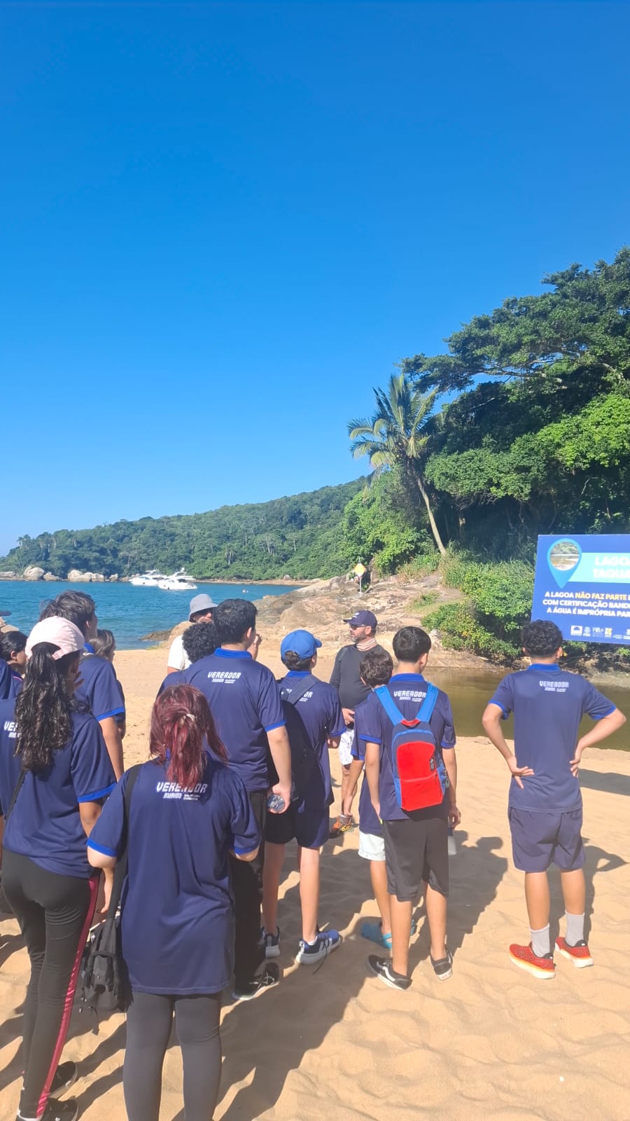 Na ação, que ocorreu na Praia de Taquaras, eles exploraram os ecossistemas costeiros e aprenderam sobre mangue, restinga e Mata Atlântica, além de observarem organismos marinhos de perto. No dia 5 de março, os vereadores mirins assistiram a uma palestra sobre balneabilidade e os critérios do Programa Bandeira Azul. O encontro serviu de base teórica para a atividade realizada em Taquaras.
