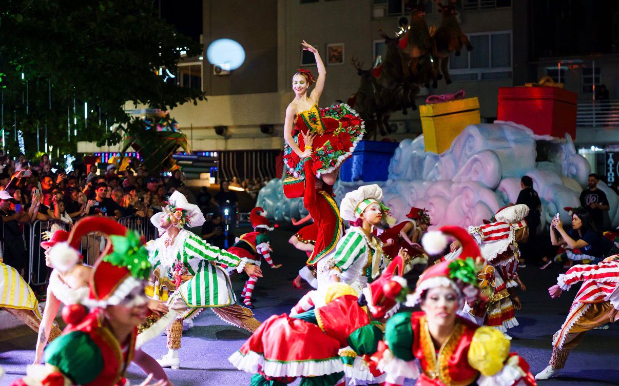 O espetáculo “Minha Noite de Natal”, realizado na noite deste sábado (27), encerrou a programação de 12 desfiles natalinos que percorreram os sete quilômetros da Avenida Atlântica, em Balneário Camboriú. As apresentações aconteceram entre os dias 19 de novembro e 27 de dezembro, nas quartas-feiras e sábados, integrando o calendário oficial do Viva o Natal BC.