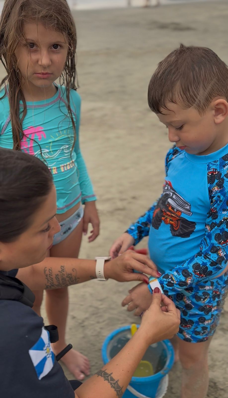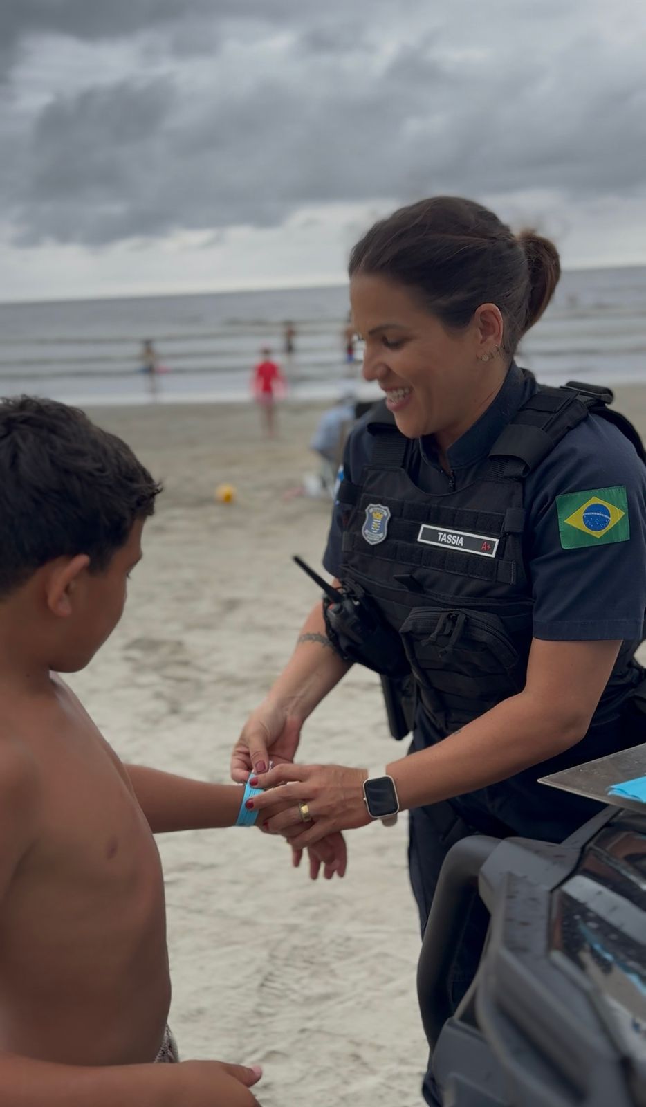 Estão sendo disponibilizadas pulseiras de identificação, que podem ser retiradas no Centro de Controle Operacional (CCO) ou diretamente com os Guardas Municipais que estarão atuando durante o Réveillon. A medida facilita a rápida localização dos responsáveis em caso de desencontro.