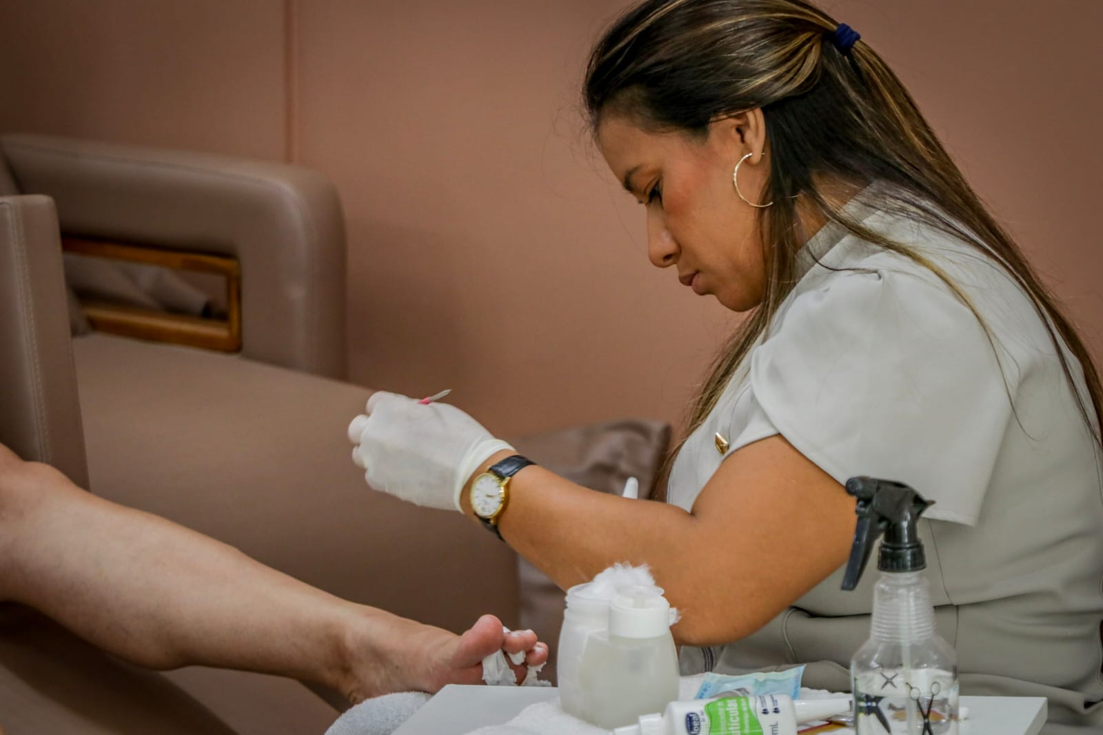 No local, as mulheres contaram, ao longo do dia, com serviços gratuitos de manicure, pedicure, maquiagem, corte de cabelo, coloração e escova.
