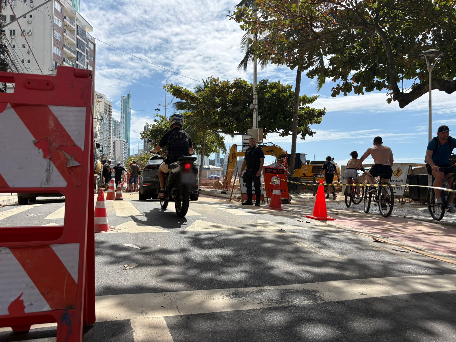 A Rua 1001 até a Avenida da Lagoa também seguirá fechada. O trânsito na Avenida da Lagoa será desviado para a Rua 701, com retorno para a Avenida Brasil. A BC Trânsito orienta os motoristas a evitar este trecho da Avenida Atlântica.